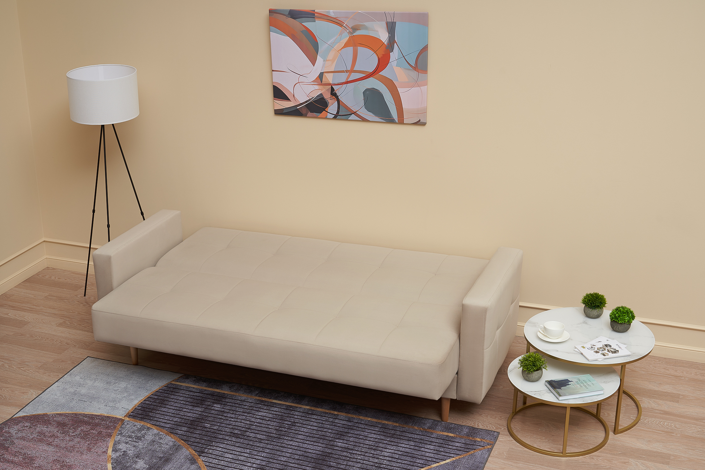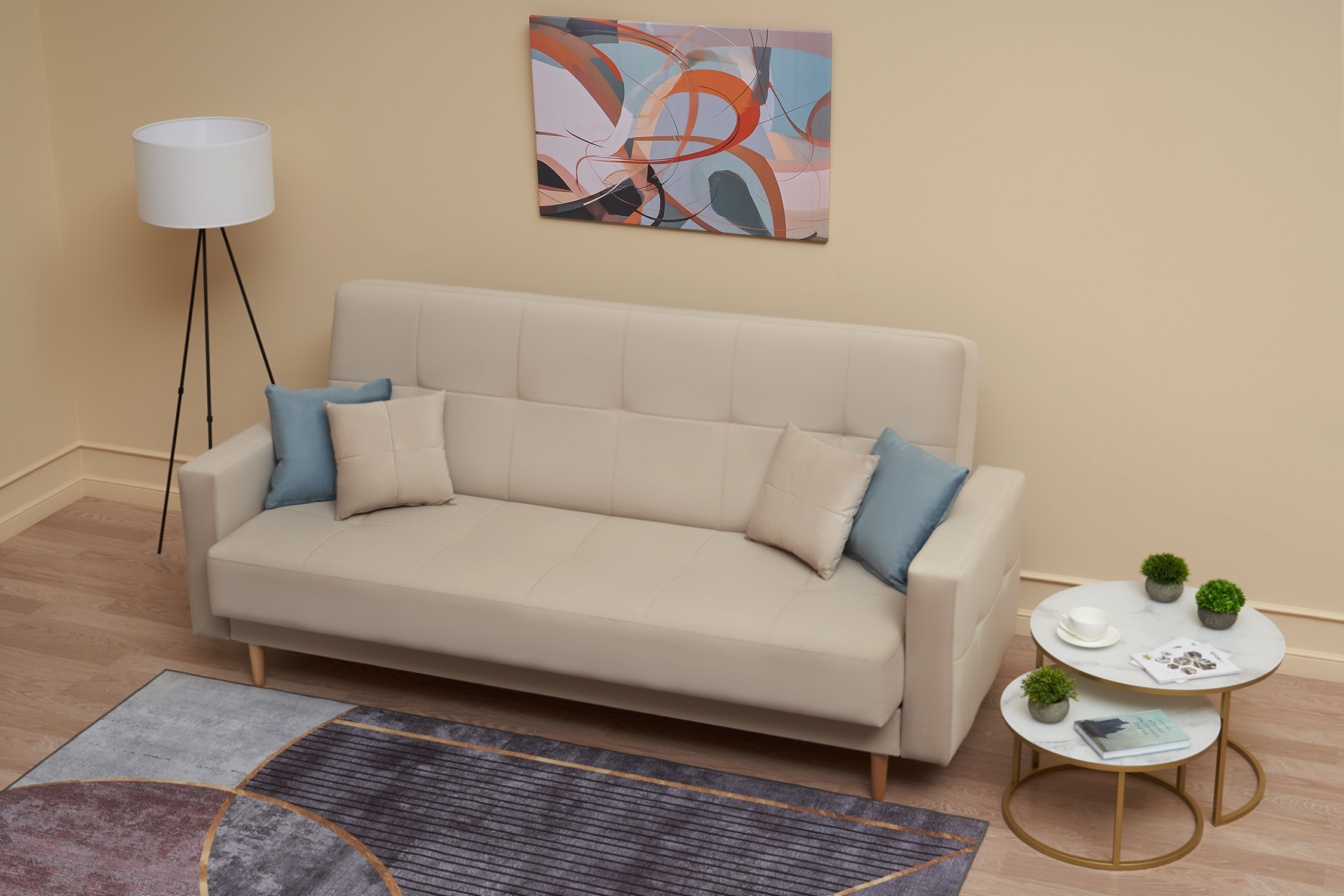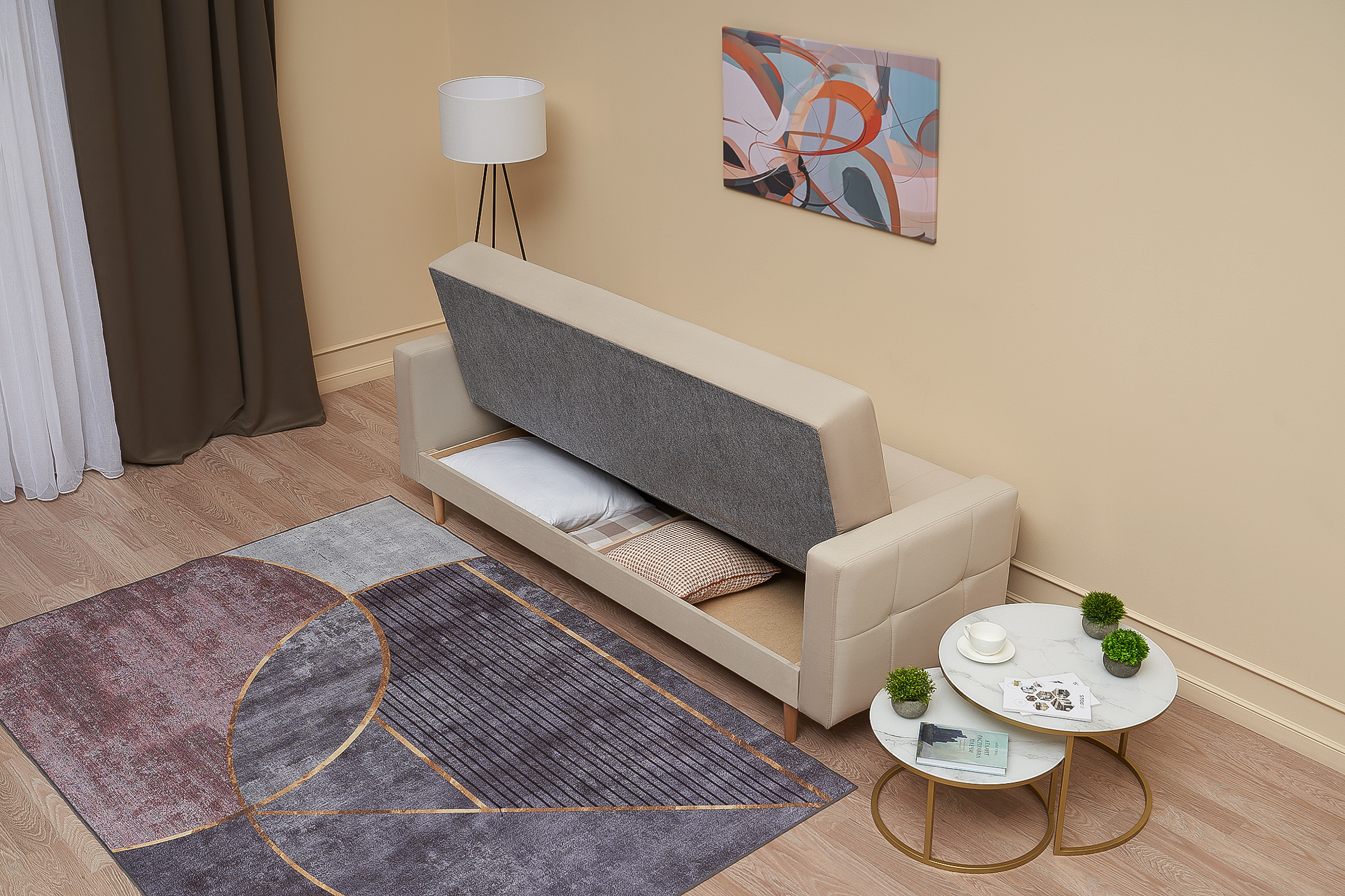 Максимальная нагрузка на спальное место - 100 кг. Высота от пола до спального места - 47 см. Специальная обработка ткани обивки наделяет свойством отталкивать жидкие загрязнения, также ткань устойчива к зацепам и любым механическим воздействиям. |