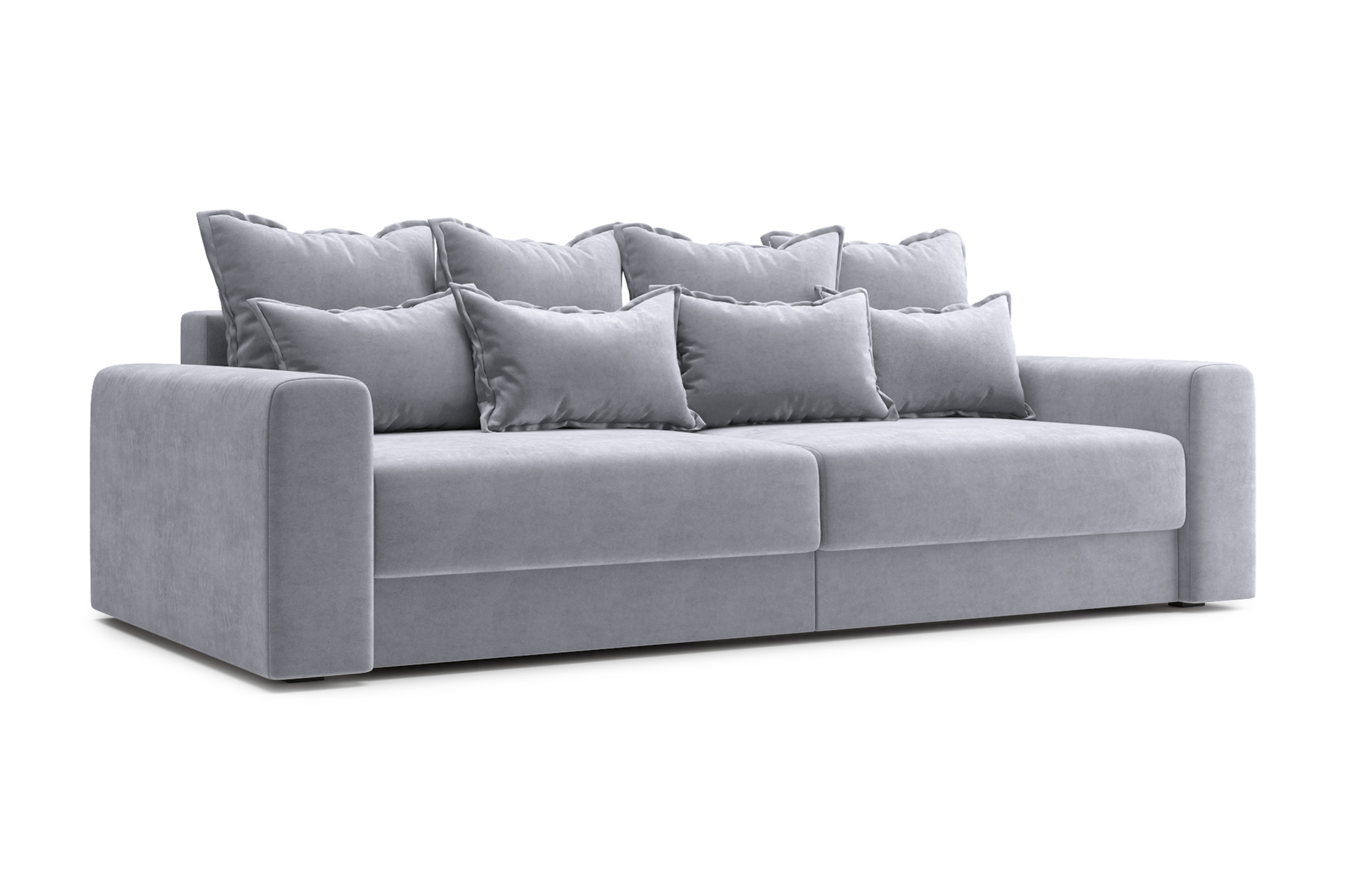 Глубина сиденья без подушек 100 см. Глубина сиденья с подушками 70 см. Высота без подушек 68 см. Высота подлокотников 57 см. Высота спинки 26 см. Ширина посадочного места 200 см. Ширина подлокотника 19 см. Размер в разложенном виде(ШхГхВ): 241х168х57 см. Размер ящика для белья (ШхГхВ): 102х97х19 см. Размер приспинных подушек (ШхГхВ): 50х20х50 см. Чехол приспинных подушек - съемный. Максимальная нагрузка на спальное место 120 кг. |